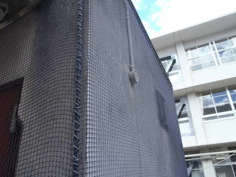 ที่จริงแล้วในการดำเนินการคลุมตาข่ายตามบ้านร้างนั้น คลุมแล้วก็จะคลุมเลยนะคะ ไม่เอาออก คลุมยันทางเข้า ใช้ตาข่ายอย่างดี เหนียวแน่นหนึบ ตัดไม่ขาด การคลุมตาข่ายนี้ ไม่ได้เพียงช่วยตอนไต้ฝุ่นมาเพียงอย่างเดียวนะคะ แต่ยังช่วยตอนแผ่นดินไหวเพื่อกันชิ้นส่วนต่างๆของบ้านหลุดหล่นไปทับคนเดินผ่านไปมาด้วยค่ะ