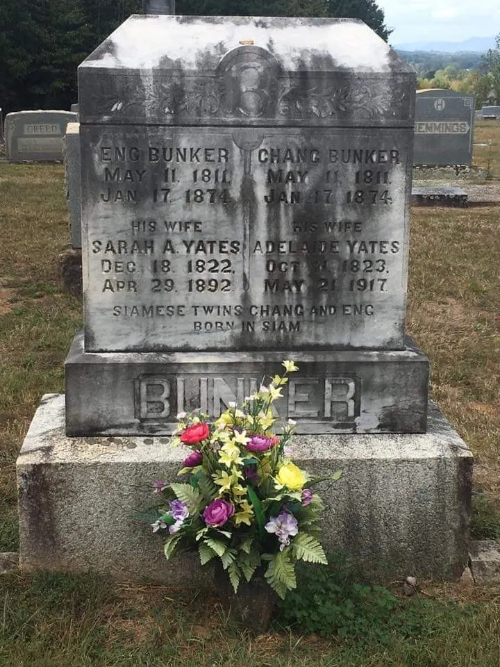 เกิด-ดับพร้อมกับ แฝดสยามคู่แรกของโลก หลุมฝังศพของฝาแฝด อิน-จัน ในเมืองSurry รัฐนอร์ทแคโรไลน่า สหรัฐอเมริกา
