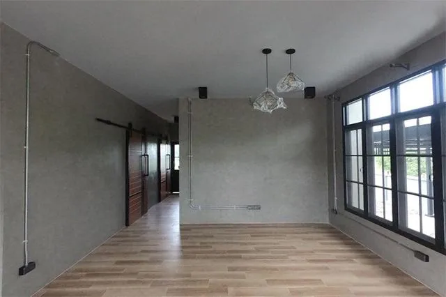 ภายในบ้านตกแต่งเป็นแบบลอฟท์ ที่ดูเรียบง่าย แต่หรูหรา ฝ้าเพดานเป็นแบบฝ้าเรียบ ประดับด้วยโคมไฟสไตล์ลอฟท์อีกเช่นกัน ทำให้ทุกสิ่งภายในตัวบ้านดูลงตัว ไม่ขัดกัน