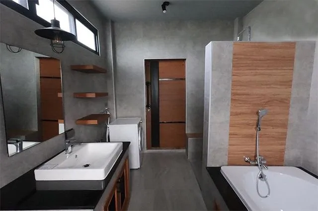 ห้องน้ำ เรียกได้ว่าเป็นอีกองค์ประกอบหนึ่งที่สวยงาม โดดเด่น ดูเป็นสัดเป็นส่วนอย่างมาก โดยเพิ่มความหรูหรา ด้วยอ่างอาบน้ำ ที่ผู้พักอาศัยสามารถ เพลิดเพลินกับบรรยากาศภายในห้องน้ำได้เป็นอย่างดี