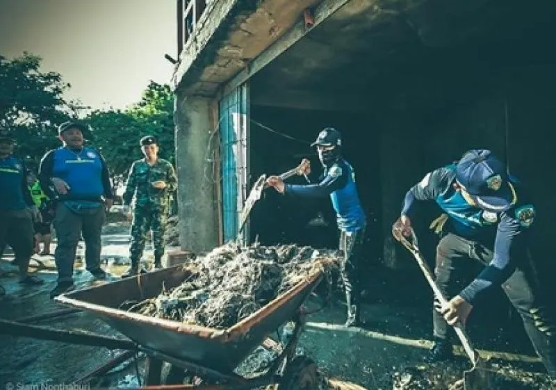 ที่นอกจากจะเดินทางไปช่วยแจกถุงยังชีพให้กับชาวบ้านผู้เดือดร้อนแล้ว เติ้ล ธนพล และคณะยังได้ลงแรงช่วยทำความสะอาดวัดวาอาราม ชุมชนบ้านเรือนที่ประสบอุทกภัย พร้อมกับโพสต์ข้อความเล่าว่า ที่นา 3,600 กว่าไร่ หายไปกับน้ำ เราได้เห็นความลำบาก เห็นรอยยิ้มทั้งน้ำตา ได้เห็นแววตาของนักสู้ขอขอบคุณพี่ ๆ เพื่อน ๆทุกท่านที่สมทบทุนมาต่อชีวิตนักสู้ชีวิตทุกท่านด้วยครับ ขอให้ทุกท่านพบเจอแต่สิ่งดี ๆ ตลอดไป ขอขอบพระคุณครับ เพราะผมเคยเจอมาก่อนเลยรู้ว่าสิ่งที่แย่ที่สุดคือหลังน้ำลด