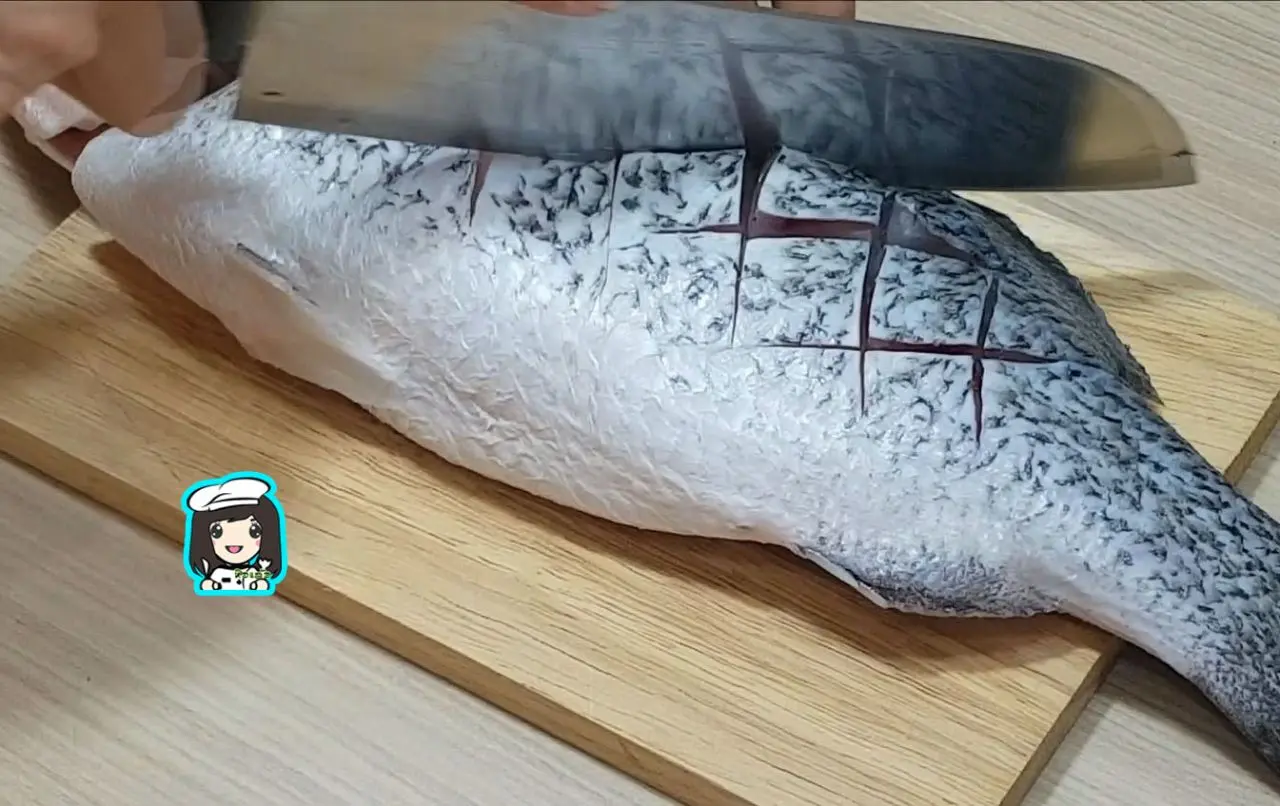 1.ขอดเกล็ดดขวักไส้ล้างให้สะอาด แล้วบั้งปลาพักไว้