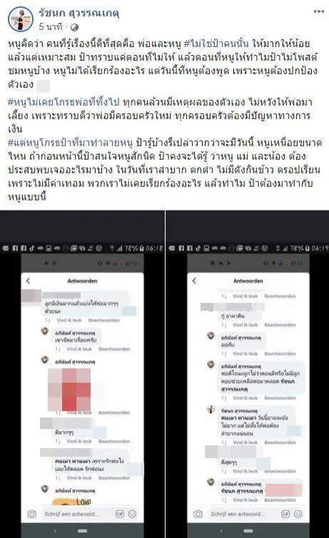 #หนูไม่เคยโกรธพ่อที่ทิ้งไป ทุกคนล้วนมีเหตุผลของตัวเอง ไม่หวังให้พ่อมาเลี้ยง เพราะทราบดีว่าพ่อมีครอบครัวใหม่ ทุกครอบครัวต้องมีปัญหาทางการเงิน