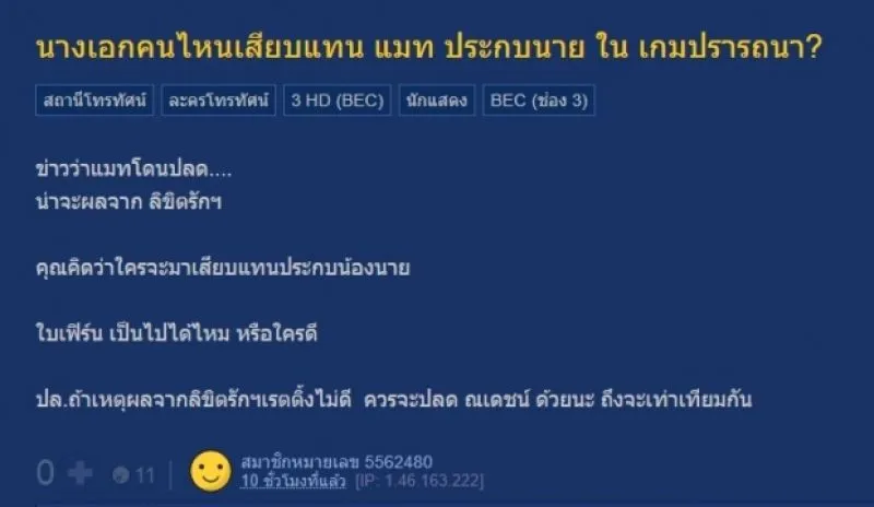 เรียกได้ว่างานนี้เหล่าชาวเน็ต ตอบรับกระแสข่าวนี้กันอย่างร้อนแรง ในเวบพันทิปดอทคอม ห้อง บางขุนพรม ถึงกับมีการตั้งโพลหา นางเอกใหม่ กันเลยทีเดียว