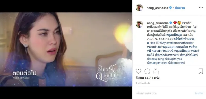 และล่าสุดทางด้านผู้จัดละครลิขิตรักข้ามดวงดาวอย่าง หน่อง อรุโณชา ภาณุพันธุ์ ก็ได้ออกมาเคลื่อนไหวกลางอินสตาแกรมเอาไว้ว่า ความรักเหมือนจะไปได้ดี แต่ก็มีจุดเรียกน้ำตา ไม่ต่างจากคดีที่ยังรุงรัง เบื้องบนสั่งปิดด่วน