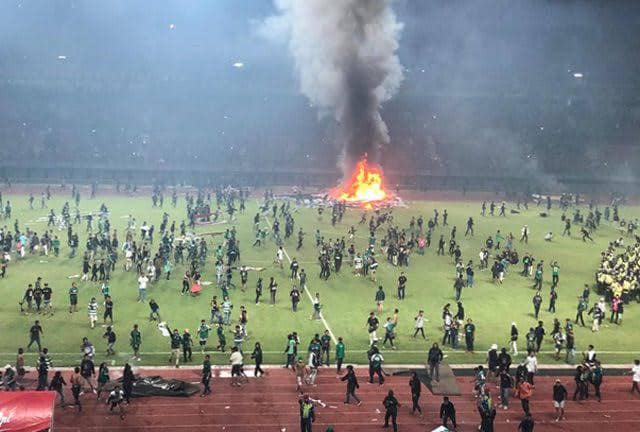เกิดเหตุไม่คาดไม่คาดฝันหลังจบการแข่งขันลีคในประเทศอินโดนีเชีย แฟนบอลหลายร้อยคนทะลักลงสนาน ทำลายสิ่งของจุดไได้ฟเผากลางสนามสร้างความตื่นตระหนกไปทั่ว เบื้องต้นสาเหตุไม่ได้มาจากทีมที่เชียร์แพ้ แต่กลุ่มผู้ก่อการร้ายไม่พอใจการเล่นของทีม เบื้องต้นยังไม่มีรายงานผู้บาดเจ็บและเสียชีวิต ความเสียหายคาดหลายล้าน