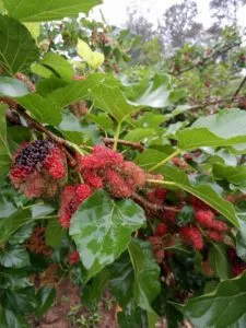 โดยทั่วไป มัลเบอร์รี่ผลแดง มีรสชาติเปรี้ยวจัด ผลม่วงดำ มีรสชาติหวาน ระวังอย่าปล่อยให้ผลสุกคาต้นจนเกินไป เพราะผลมัลเบอร์รี่จะมีรสหวานติดฝาด จึงควรเก็บเกี่ยวผลผลิตในระยะเวลาที่เหมาะสมด้วย ช่วงฤดูฝน ต้นมัลเบอร์รี่ฉ่ำน้ำ จะมีรสหวานลดลงหน่อย ผลผลิตในช่วงฤดูร้อนและฤดูหนาว มัลเบอร์รี่ผลสุกสีดำจะมีรสชาติหวานอร่อยชื่นใจ