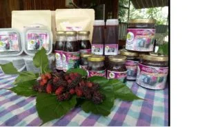 ปัจจุบัน คุณรัตน์ ปลูกต้นมัลเบอร์รี่มาได้ 5 ปีแล้ว ระยะแรกเน้นกินผลสดเป็นหลัก เพิ่งหันมาแปรรูปมัลเบอร์รี่ในช่วง 3 ปีหลังนี่เอง คุณรัตน์ นำมัลเบอร์รี่ผลสดไปแปรรูป เพื่อยืดอายุการขายและสร้างมูลค่าเพิ่มในหลากหลายรูปแบบ เช่น น้ำมัลเบอร์รี่พร้อมดื่ม น้ำมัลเบอร์รี่แบบเข้มข้น แยมมัลเบอร์รี่ และมัลเบอร์รี่หยี (เอามัลเบอร์รี่ผลสดไปกวนกับน้ำตาลทราย นำไปอบแห้งและตัดเป็นชิ้นๆ กินเป็นขนมเพื่อสุขภาพ)