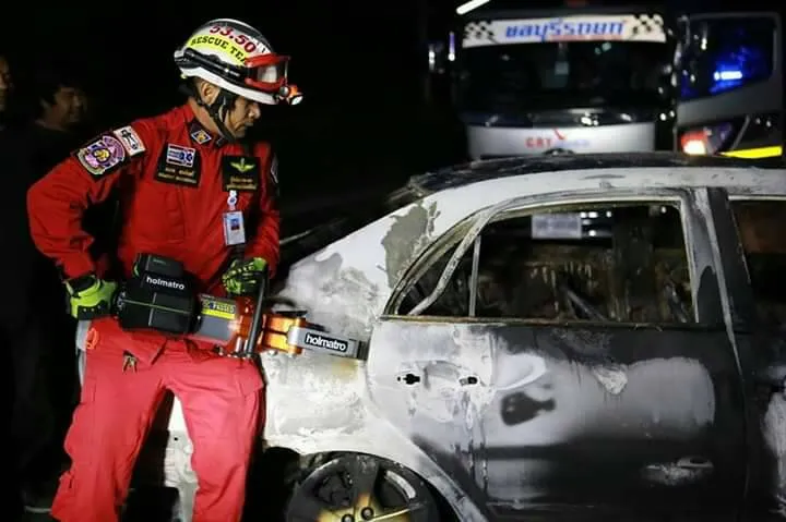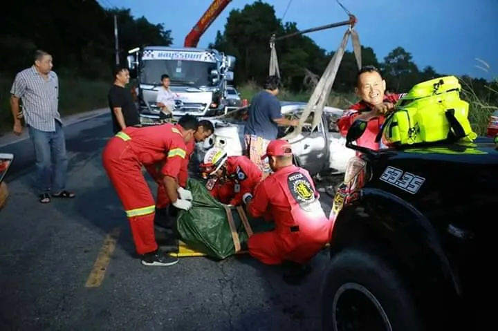 ....ทีมกู้ภัยมังกร ได้นำอุปกรณ์ตัดถ่าง งัดร่างผู้เสียชีวิต ส่งสถาบันนิติเวช รพ.ชลบุรี เพื่อรอญาติตอไป