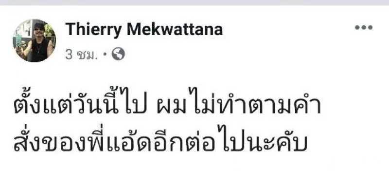 ทำเอาหลายคนต่างก็งงกันไปใหญ่กับประเด็นสะเทือนวงการเพลงเพื่อชีวิตเลยทีเดียว เมื่ออยู่ๆ เทียรี่ เมฆวัฒนา หนึ่งในสมาชิกของวงคาราบาว ได้ออกมาโพสต์ข้อความผ่านทางเฟซบุ๊กส่วนตัวว่า ตั้งแต่วันนี้ไป ผมไม่ทำตามคำสั่งของพี่แอ้ดอีกต่อไปนะครับ