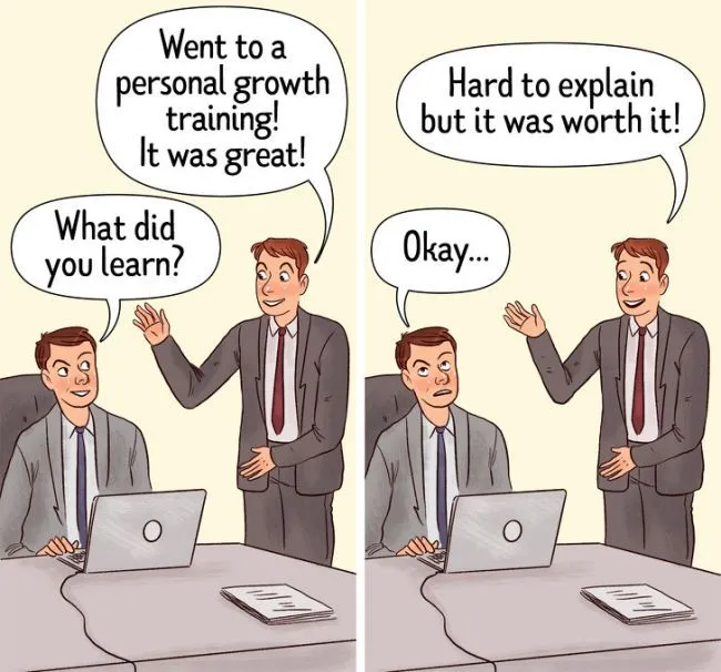 (A: ฉันไปอบรมการพัฒนาตนเองมา มันดีมากเลย ฺB: คุณเรียนรู้อะไรบ้าง