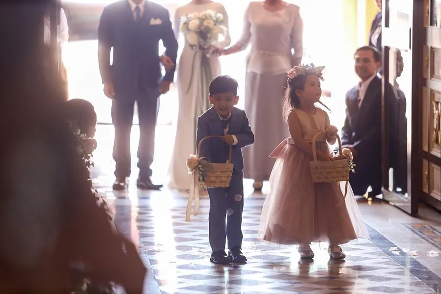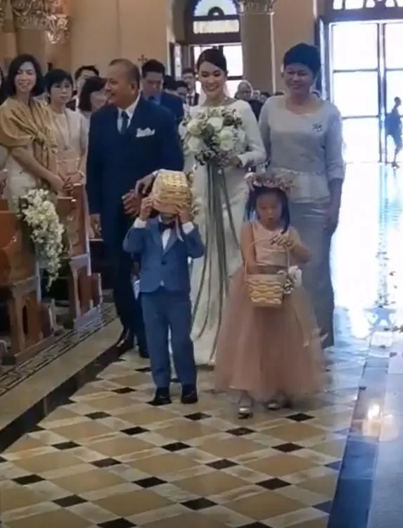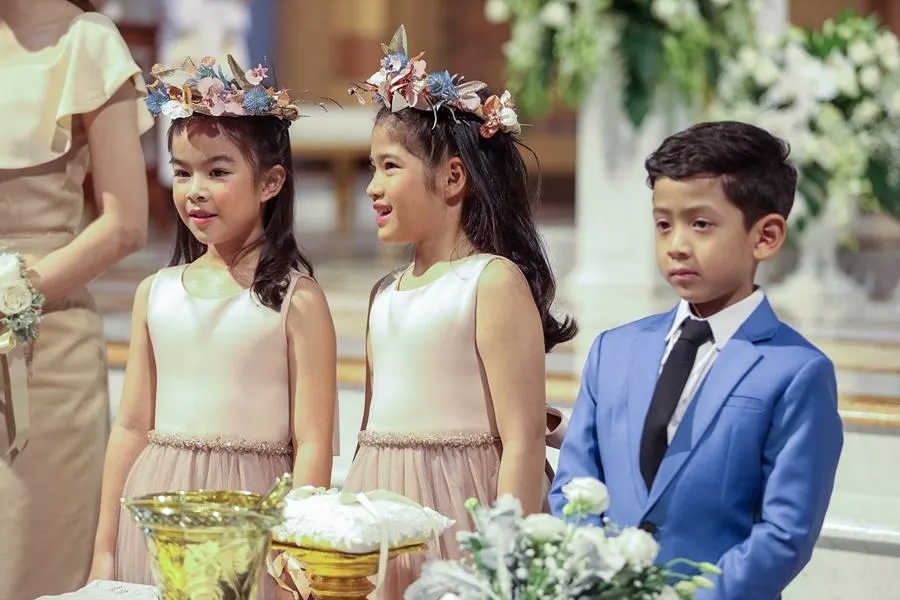 อีกทั้งในช่วงที่เจ้าสาวกำลังเดินเข้ามายังแท่นพิธีก็ได้รับเกียรติจากทายาทคนบันเทิงตัวน้อย เริ่มจาก น้องนาวา ผู้รับหน้าที่เป็นผู้ถือแหวนให้กับคู่บ่าวสาว ในขณะที่ น้องภู และ น้องเภา รวมไปถึง น้องโสน และ น้องสวรรค์ ก็ขอทำหน้าที่สำคัญเป็นผู้ถือช่อดอกไม้ภายในงานเช่นกัน