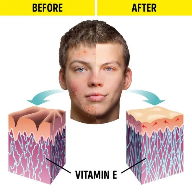 จากการศึกษาครั้งนี้ผู้ที่มีสิวมาก มีวิตามินอีในกระแสเลือดน้อยกว่า 9% การรับประทานอัลมอนด์เพื่อปรับปรุงสภาพผิวเป็นวิธีรักษาแบบดั้งเดิมในตะวันออกกลางซึ่งได้รับการสนับสนุนจากวิทยาศาสตร์ อัลมอนด์เต็มไปด้วยวิตามินอีและสารต้านอนุมูลอิสระที่ช่วยคุณรักษาสิวและฟื้นฟูผิวของคุณ