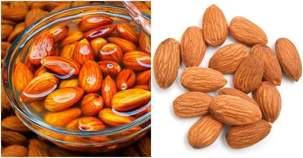 ตามอายุรเวทยา อัลมอนด์ทั้งดิบและคั่วมีสารอาหารที่มีประโยชน์เหมือนกัน ข้อมูลที่ได้ยินต่อๆกันมาบอกว่าการปอกเปลือกและแช่อัลมอนด์ข้ามคืนจะช่วยลดระดับแทนนินได้ ซึ่งระบุว่าหากรับประทานแทนนินในปริมาณมากอาจป้องกันการดูดซึมสารอาหาร แต่จากการศึกษายังไม่พบหลักฐานสนับสนุนข้อมูลนี้