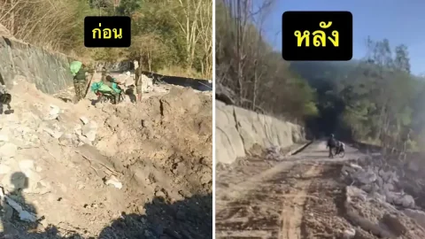 ทางขึ้นพระวิหาร ที่โดน F16 ไทยบินทิ้งระเบิดตัดขาดเส้นทางลำเลียงอาวุธยุทโธปกรณ์เขมรใช้เวลาซ่อม เสร็จเพียง 1 วันสามารถสัญจรได้