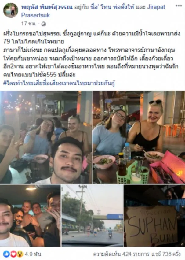 หนุ่มไทยมีน้ำใจ เจอฝรั่งโบกรถขอไปสุพรรณ จึงพาไปส่งทั้งเลี้ยงข้าว ออกค่ารถให้อีก