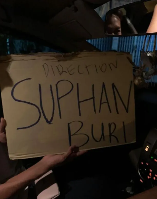 “ฝรั่งโบกรถขอไปสุพรรณ ซึ่งตัวเรานั้นอยู่กาญ แต่ก็นะ ด้วยความมีน้ำใจเลยพามาส่ง 79 โลไม่ไกลเกินใจหมาย ภาษาก็ไม่เก่งนะ กดแปลกูเกิ้ลคุยตลอดทาง โทรหาอาจารย์ภาษาอังกฤษให้คุยกับเขาหน่อย