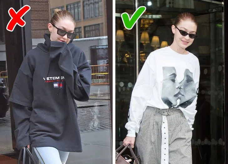 เสื้อผ้าขนาดใหญ่จะดูดีกว่าเมื่อใส่ไว้ในกางเกง เพื่อเน้นเอวและทำให้คุณดูผอมลง