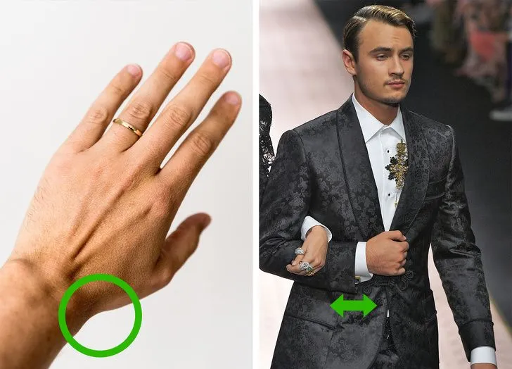 แขนเสื้อแจ็คเก็ตควรจะอยู่ใกล้กระดูกข้อมือ ความแตกต่างระหว่างแขนเสื้อและแจ็คเก็ตควรต่างกันประมาณ 1.5-2 ซม.