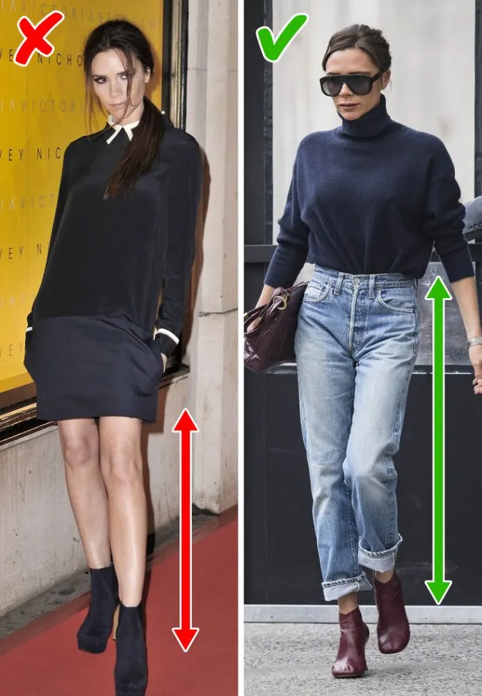 การสวมรองเท้าบูทหุ้มข้อกับกระโปรงสั้นทำให้ขาของคุณดูสั้นลง ดังนั้นควรสวมใส่กางเกงยีนส์ขายาวหรือกระโปรงยาว หากคุณชอบใส่รองเท้าบูทหุ้มข้อ