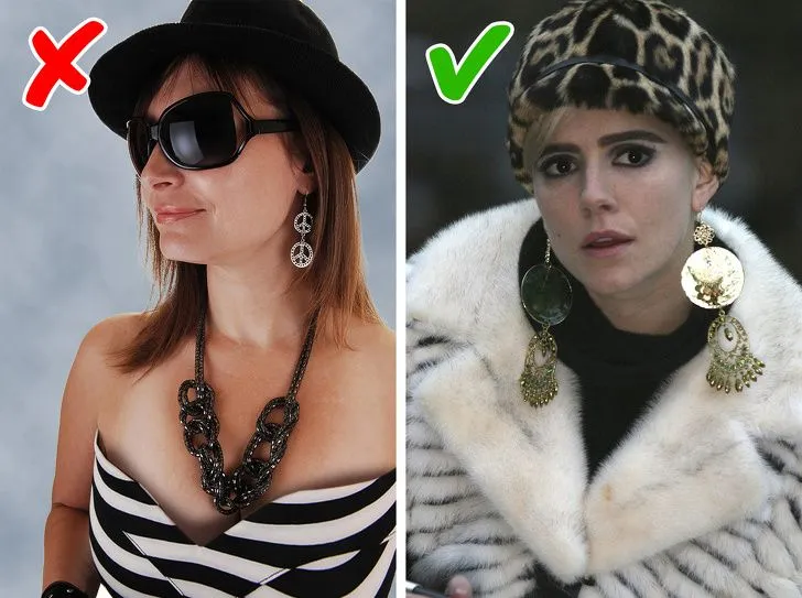 เครื่องประดับต่าง ๆ ใกล้ใบหน้าของคุณไม่ควรเยอะเกินไป ควรมีเครื่องประดับไม่เกิน 3 ชิ้น มันอาจจะเป็นแว่นตา สร้อยคอ หมวก เข็มกลัด ต่างหู หรือผ้าคลุมไหล่ เลือก 3 อย่างที่คุณชอบมากที่สุดก็พอแล้ว