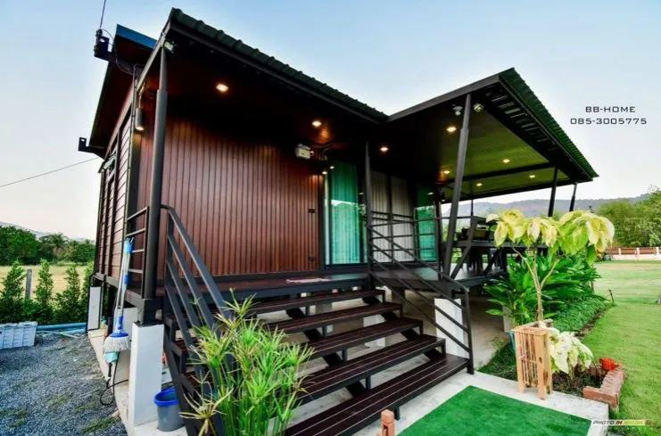 บ้านน็อคดาวน์หลังนี้ สไตล์โมเดิร์น ที่ยังคงเสน่ห์ของไสตล์นี้ไว้ ด้วยการออกแบบที่มีเอกลักษณ์ การใช้วัสดุที่คุ้มค่า และยังตกแต่งได้เสมอตามใจท่านผู้เป็นเจ้าของ ขนาดมีขนาดเล็กกะทัดรัดเหมาะแก่การมาพักผ่อนในวันสบาย โดยเป็นผลงานจาก BB-Home บ้านน็อคดาวน์ เราไปชมความสวยงามของบ้านหลังนี้กันครับ