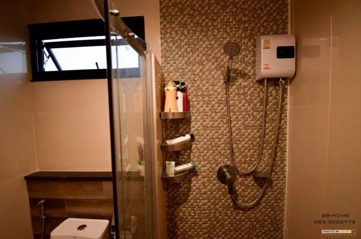 มาถึงอีกห้องที่มีความสำคัญอีกห้อง นั่นก็คือห้องน้ำนั่นเองห้องนี้คือห้องที่จะมอบความสุขให้เราทุกคน ตกแต่งได้อย่างสวยงาม อุปกรณ์สุขภัณฑ์ครบครับ ห้องอาบน้ำน่าอาบ เชื่อว่าได้เข้าไปทำธุระแล้ว คงต้องอยากอยู่นานๆ อาบน้าเย็นๆ อย่างผ่อนคลาย