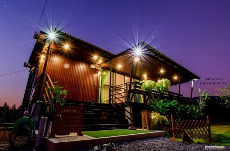 ภาพบรรยากาศในเวลากลางคืน ตกแต่งหลอดไฟได้สวยงาม แสงสว่างเพียงพอ เอาล่ะครับหลังจากที่ชมบ้านหลังนี้มาแล้ว เป็นอย่างไรกันบ้างครับ ผู้เขียนอยากบอกว่าชอบมากๆ หวังว่าคงจะเป็นประโยชน์กับท่านผู้อ่าน หรืออาจเป็นไอเดียเป็นแนวทางกันต่อไป สำหรับท่านที่ต้องการรายละเอียดและข้อมูลเพิ่มเติม ติดต่อได้ที่ โทร 085-3005775, 081-8775996 Line : bbhome2014 Facebook : BB-Home บ้านน็อคดาวน์ ครับ