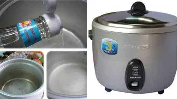 1) น้ำส้มสายชู โดยการล้างหม้อหุงข้าวให้สะอาด จากนั้นเทน้ำส้มสายชูผสมน้ำเปล่าลงในหม้อหุงข้าว แล้วนำไปต้มให้เดือดประมาณ 20 นาที จากนั้นนำหม้อไปล้างให้สะอาดอีกครั้ง
