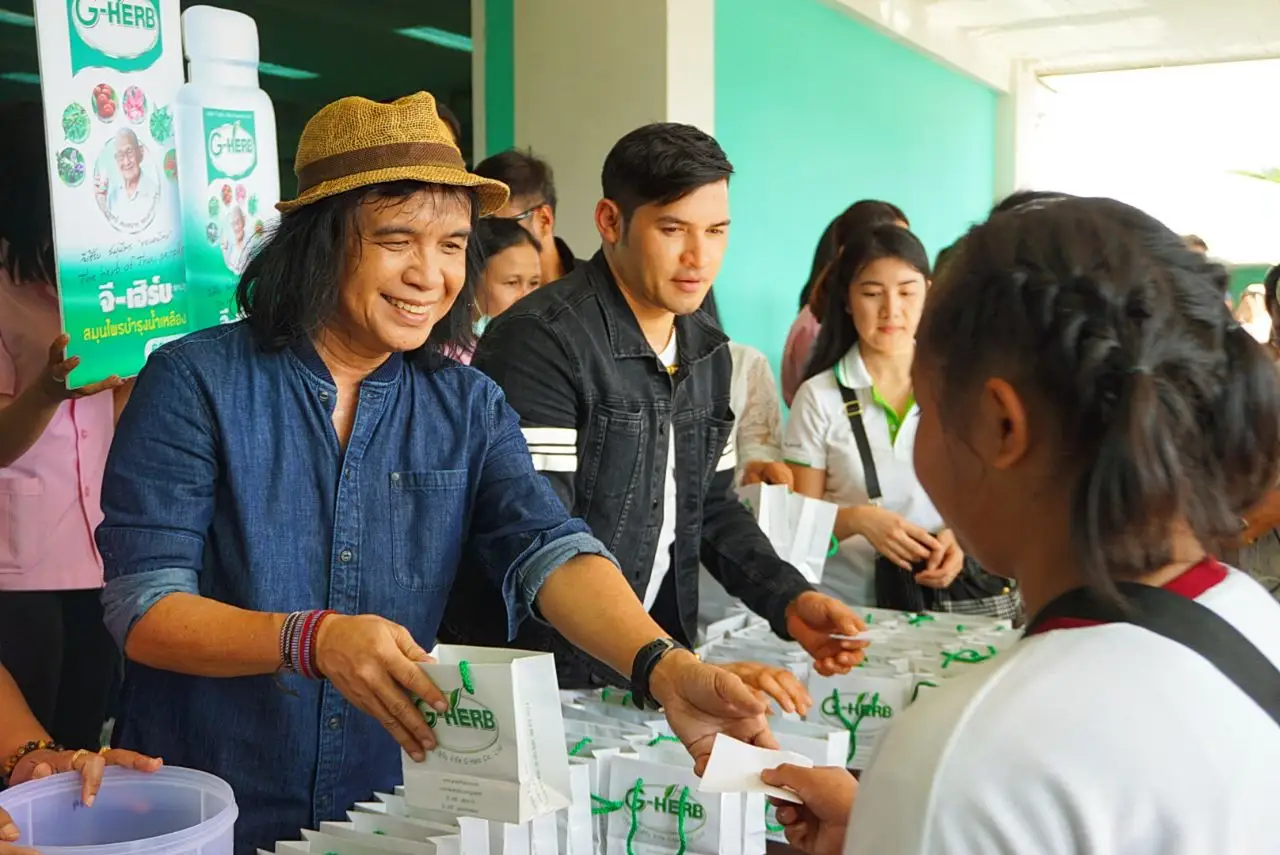 คุณอัศวิน นำทีมดารา บอส-ตาล ร่วมบุญแจกยาสมุนไพร จีเฮิร์บ เพื่อผู้ป่วยโรคมะเร็ง
