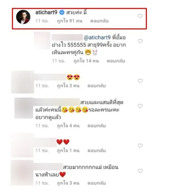 เเละล่าสุด หนุ่มอั้ม อธิชาติ นั้นก็ได้รีบโผล่คอมเมนต์ หลัง เห็นแอฟ ทักษอร โพสต์รูปภาพลงไอจี ขณะสวมมงกุฎเพชร มูลค่า 200 ล้าน ซึ่งงานนี้ หนุ่มอั้ม อธิชาติ นั้นก็ได้เเสดงความคิดเห็นว่า สวยค่ะ มี๊ อีกด้วยจ้า