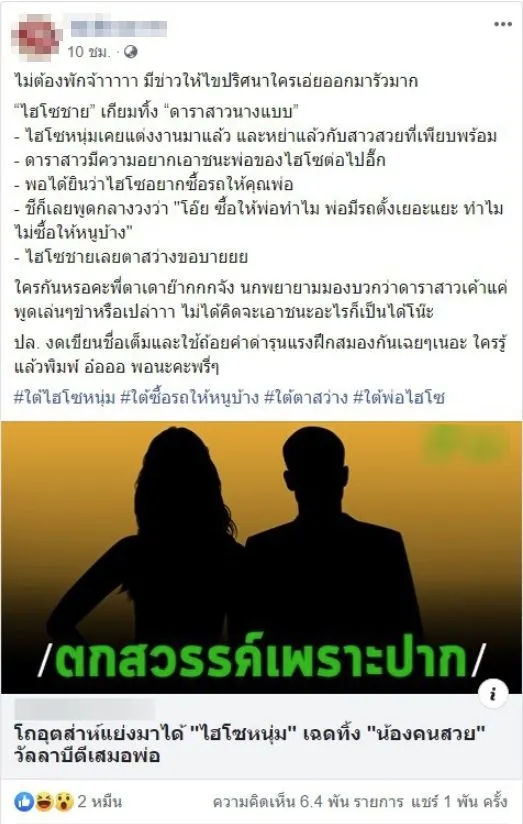 เเละขณะนี้ก็เป็นข่าวเม้าท์สนั่นเมื่อมีเพจชื่อดัง ได้ออกมาแฉว่าไฮโซหนุ่ม ที่เคยเเต่งงานมาเเล้ว เเละหย่าเเล้วกับภรรยาที่สวยเพียบพร้อม อีกทั้งเตรียมทิ้งดาราสาวคนสวยอีกด้วย งานนี้ชาวเน็ตจำนวนมาก จึงต่างเเสดงความคิดเห็นว่า อาจจะเป็นคู่ของ ทายาทโบนันซ่า สงกรานต์ เเละ สาวแมท ภีรนีย์ หรือไม่