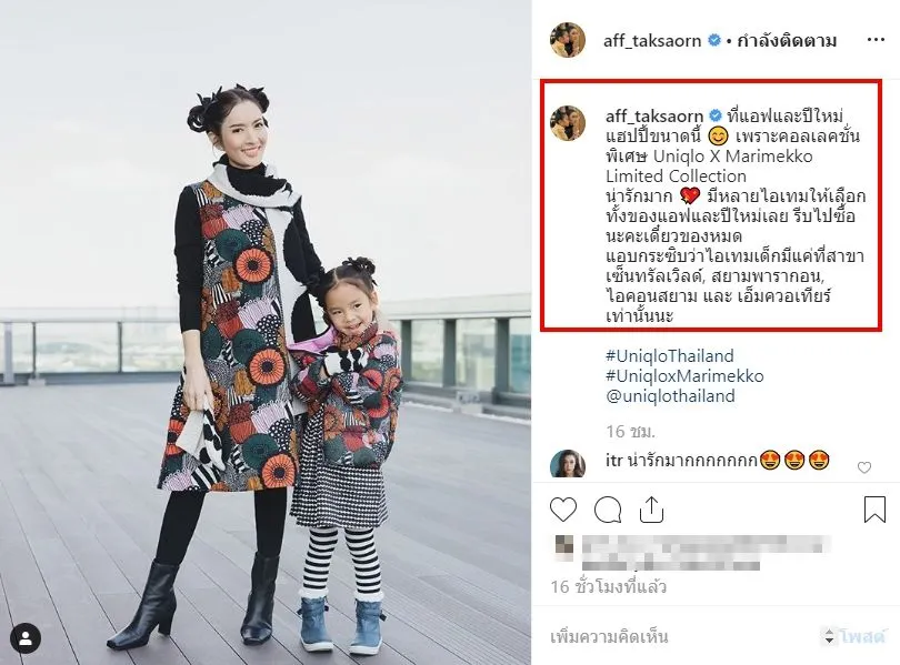 ที่แอฟและปีใหม่แฮปปี้ขนาดนี้ เพราะคอลเลคชั่นพิเศษ Uniqlo X Marimekko Limited Collection น่ารักมาก มีหลายไอเทมให้เลือกทั้งของแอฟและปีใหม่เลย รีบไปซื้อนะคะเดี๋ยวของหมดแอบกระซิบว่าไอเทมเด็กมีแค่ที่สาขาเซ็นทรัลเวิลด์, สยามพารากอน, ไอคอนสยาม และ เอ็มควอเทียร์เท่านั้นนะ
