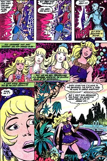 Amethyst: Princess of Gemworld เป็นการ์ตูนฮีโร่ของค่าย DC Comics เรื่องราวของ Amy Winston ที่มารู้ตัวในวันเกิดอายุ 13 ปีของเธอว่า เธอคือ เจ้าหญิง Amethyst แห่งอาณาจักรอัญมณี! (Gemworld) เธอถูกแม่มดที่เป็นแม่เลี้ยงทูลหัว (คล้ายๆนางฟ้าแม่ทูลหัว) ส่งตัวมายังโลกมนุษย์เพื่อปกป้องตัวเธอจาก Dark Opal พ่อมดผู้ชั่วร้ายที่เข้ารุกรานอาณาจักร พวกมันได้สังหารราชาและราชินี แล้วขึ้นครองราชย์แทน