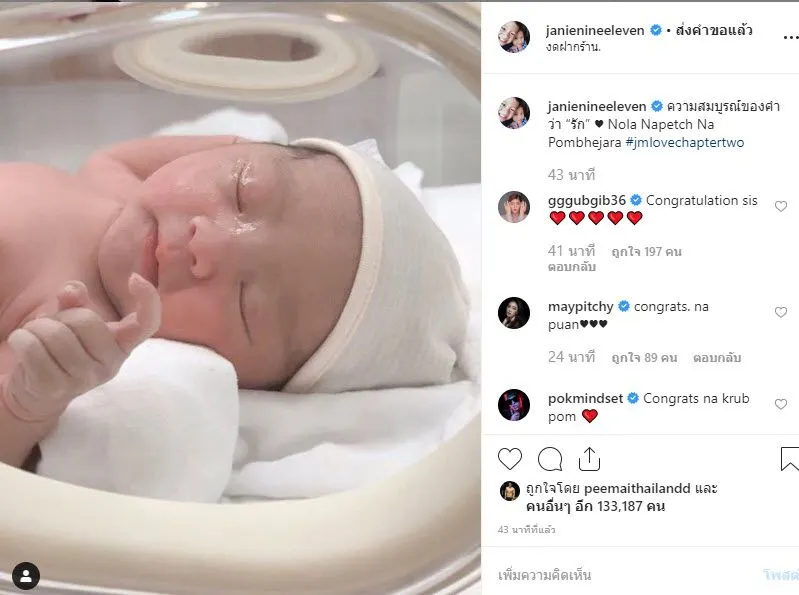 กลายเป็นคุณแม่เต็มตัวแล้วสำหรับ เจนี่ เทียนโพธิ์สุวรรณ ที่ล่าสุด เผยภาพพร้อมแคปชั่นว่า ความสมบูรณ์ของคำว่า “รัก” Nola Napetch Na Pombhejara #jmlovechaptertwo