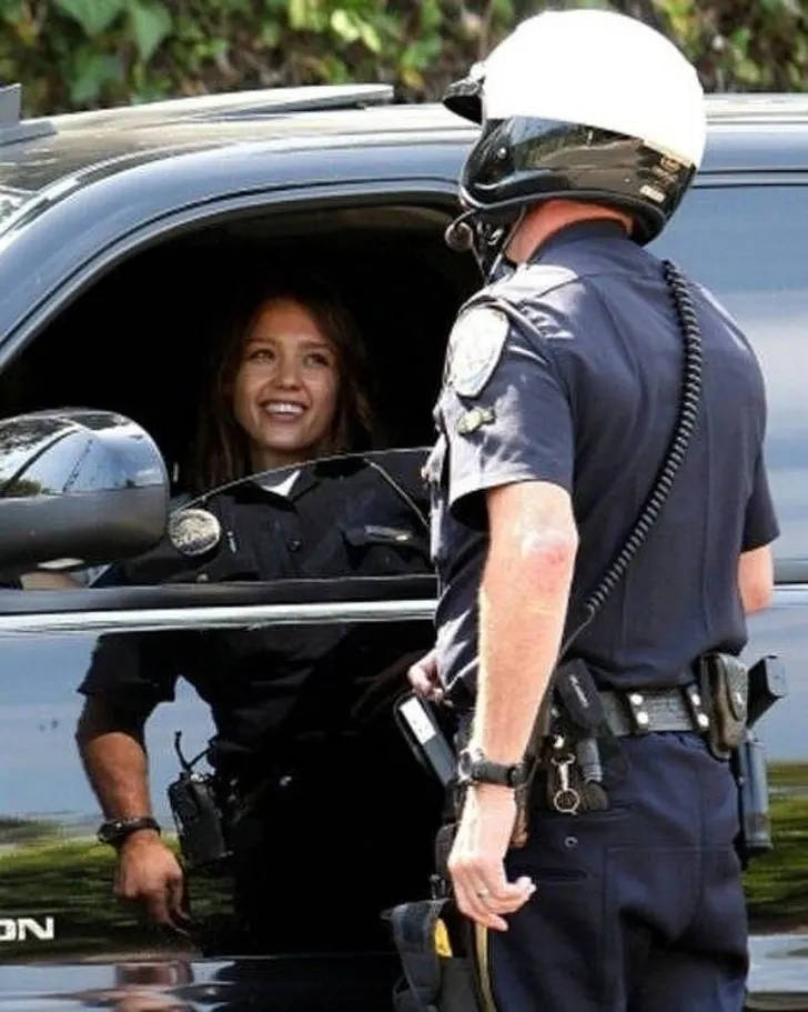 ตำรวจหญิงยืนคุยกับตำรวจชาย