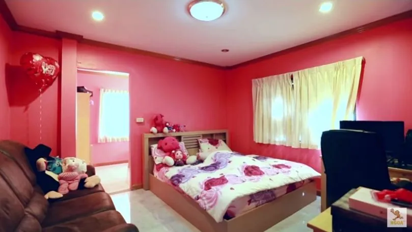 ซึ่งต้องบอกเลยว่าบ้านหลังนี้ถูกตกแต่งออกมาได้น่ารักอบอุ่นสุดๆ อีกทั้งยังรักรถเป็นชีวิตจิตใจถึงขั้นสร้างตู้กระจกและติดแอร์ให้รถอยู่ โดยเฉพาะอย่างยิ่งห้องลับของลูกชายหัวแก้วหัวแหวนทั้งสองคน ที่ใครจะคิดว่าเป็นผู้ชายมาดแมนขนาดนี้ แต่มีสไตล์การแต่งห้องออกมาได้หวานแหวว และมุ้งมิ้งได้แบบนี้