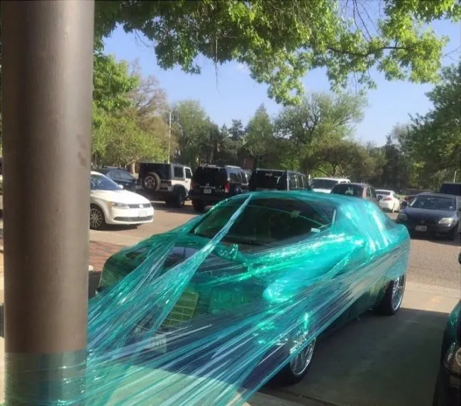 สงสัยจะเป็นเจ้าของที่ เลยจัดการล้อมรั้วให้รถพี่เขาอย่างดี