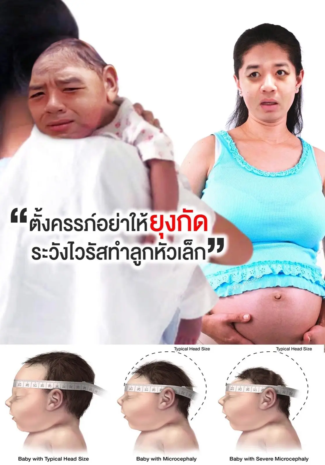 แต่ถ้าตั้งครรภ์อยู่แล้วโดนยุงที่มีเชื้อกัด อาจจะทำให้ลูกที่คลอดมาพิการหัวเล็ก สมองเล็ก (microcephaly) หรือมีภาวะแทรกซ้อนระหว่างตั้งครรภ์ได้