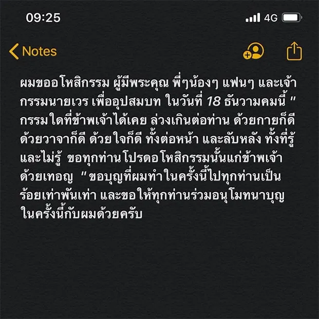 ขออโหสิกรรม!! ปั้นจั่น ปรมะ โพสต์ขอลาบวช วันที่ 18 ธันวาคมนี้