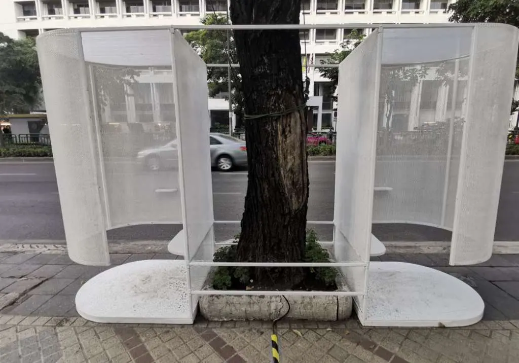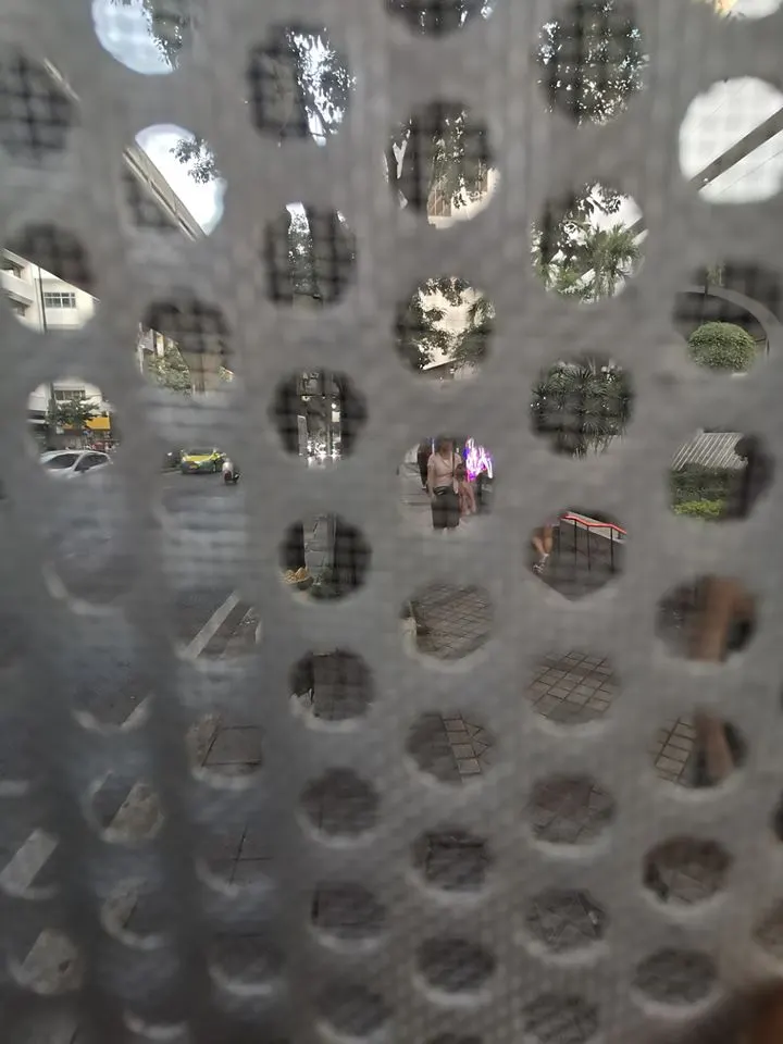 หน้าสนง.ใหญ่GUเลย แม่เอ๊ย น่าจะเหมาะกับคนชอบเป็นจุดสนใจหรือ introvertที่อยากฝึกตน ที่นั่งพอดีตัวกำลังสบายๆไม่อึดอัด นั่งแล้วก็จงขบคิดสัญญะของงานจัดแสดงนี้ไปพลางๆ ผ้ามุ้งกึ่งโปร่งแสงช่วยให้เราอยู่ในดินแดนกึ่งกลางระหว่าง privacy และ security อาาา สูดหายใจลึกๆนั่งในนี้เผลอๆผ่านตาผู้คนมากกว่าซื้อแอดเฟซบุค ทำเป็นเล่นไป แบรนด์ต้องลงแล้วงานนี้ แผ่นกรอง pm10คือผ้ามุ้งดีๆนี่เอง ไม่น่าจะกรองอะไรได้ทั้งนั้นและถึงกรองได้มันก็ไหลเข้าข้างๆอยู่ดีปะวะ จะบ้าเหรอไหนๆจะมาเวย์นี้ กรุดีๆให้มิดชิดกันแมงวัน อะแด้ปเป็นที่ตากปลาแห้ง กล้วยตาก เนื้อเค็มไปเลย ไทยๆดี ได้ที่เช็คอินไอจีเกร๋ๆ ถ้าจะทำแบบนี้ เอางบไปทำถังขยะเยอะๆเถอะ ไหว้ย่อ