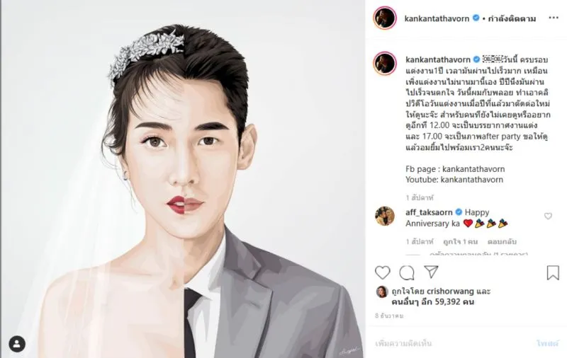 เรียกว่าครบรอบแต่งงานได้ 1 ปีไปหมาดๆก็เกิดเรื่องซะแล้ว สำหรับ กันต์ กันตถาวร และภรรยาวสาว พลอย อัยดา โดยฝ่ายได้โพสต์วันครบรอบไว้ว่า วันนี้ ครบรอบแต่งงาน1ปี เวลามันผ่านไปเร็วมาก เหมือนเพิ่งแต่งงานไม่นานมานี้เอง ปีปีนึงมันผ่านไปเร็วจนตกใจ วันนี้ผมกับพลอย ทำเอาคลิปวิดีโอวันแต่งงานเมื่อปีที่แล้วมาตัดต่อใหม่ให้ดูนะจ๊ะ สำหรับคนทียังไม่เคยดูหรืออยากดูอีกที 12 00 จะเป็นบรรยากาศงานแต่ง และ 17 00 จะเป็นภาพafter party ขอให้ดูแล้วอมยิ้มไปพร้อมเรา2คนนะจ๊ะ