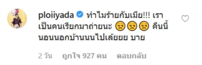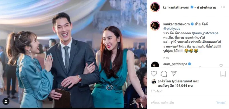 โดยหลังจากที่หนุ่มกันต์นั้นแท็กหาศรีภรรยาก็ปรากฏว่า สาวพลอยก็ไม่พลาดทุกการรับชม แถมเธอยังไม่พลาดที่จะข้ามาคอมเมนต์ตอบกลับใต้โพสต์ของสามีไปแบบฮาๆ ว่า ทำไมร้ายกับภรรยา เราเป็นคนเรียกมาถ่ายนะ คืนนี้นอนนอกบ้านนน ไปเล้ยยย บาย