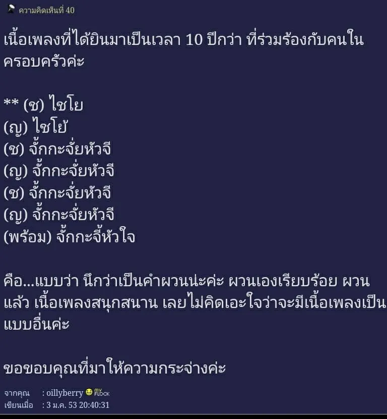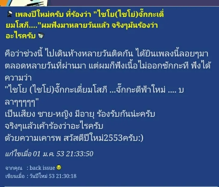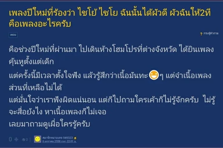 อยุ่มาสามสิบฝ่าปี ปีใหม่ทีไรก็ฟังเพลงนี้ตลอด แต่ ไม่เคยเปิดเนื้อเพลงดูเลย เข้าใจว่าร้อง ฉันจะได้ผัวดี ฉันจะได้ผัวฟรี ฉันจะได้ผัวใหม่ มาตลอดเลย