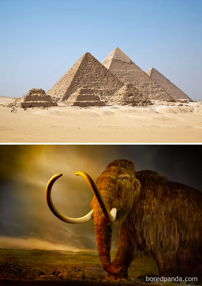 พีระมิดสร้างขึ้นเมื่อ 2,630-2,611 ปีก่อนคริสตกาล ส่วนแมมมอธเชื่อว่าสูญพันธุ์เมื่อ 1,650 ปีก่อนคริสตกาล