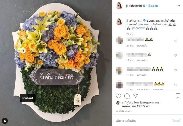 จั๊กจั่น อคัมย์สิริ โผล่ส่งพวงหรีดอาลัย คุณแม่ชาคริต อดีตคู่หมั้น
