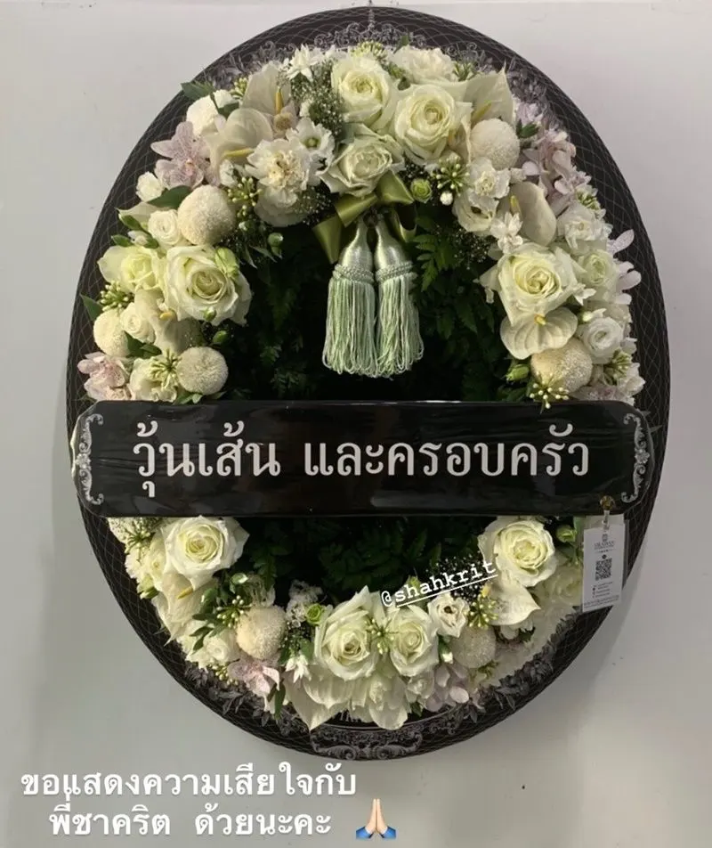 ทั้งนี้ วุ้นเส้น วิริฒิพา ได้โพสต์ภาพพวงหรีดจาก “วุ้นเส้น และครอบครัว” ที่ส่งไปร่วมงานศพคุณแม่ของชาคริต ลงใน IG Story แท็กหาชาคริต พร้อมข้อความว่า “ขอแสดงความเสียใจ กับพี่ชาคริตด้วยนะคะ”