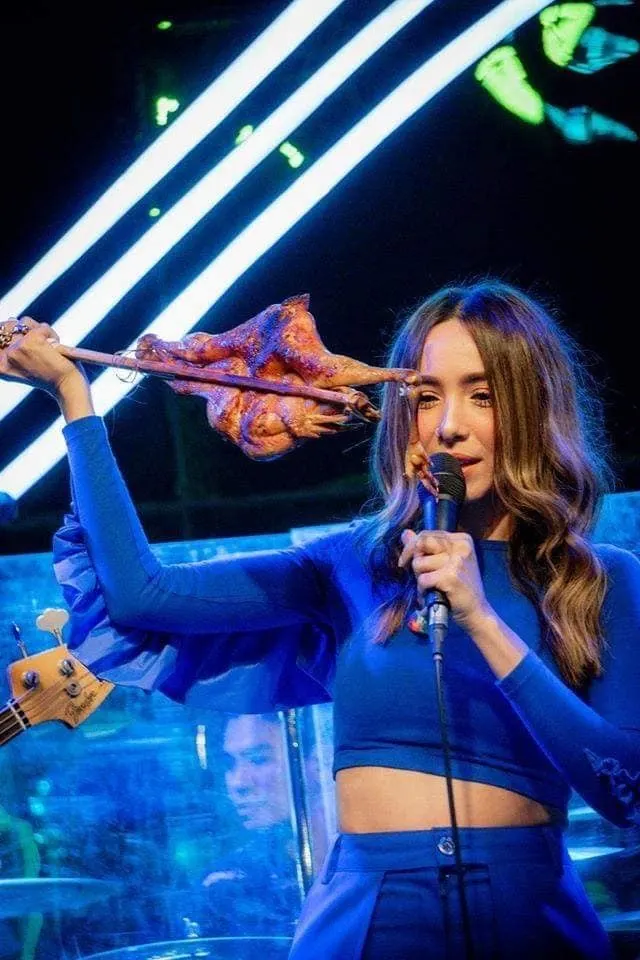 พี่มี่ถือไก่ย่างได้เหมือนไวโอลีนมาก แฟนคลับบางคนกล่าว