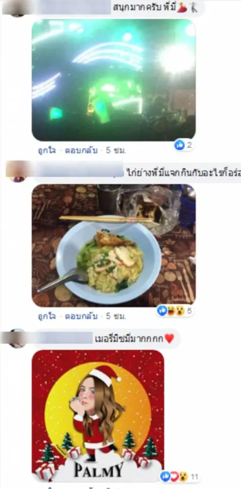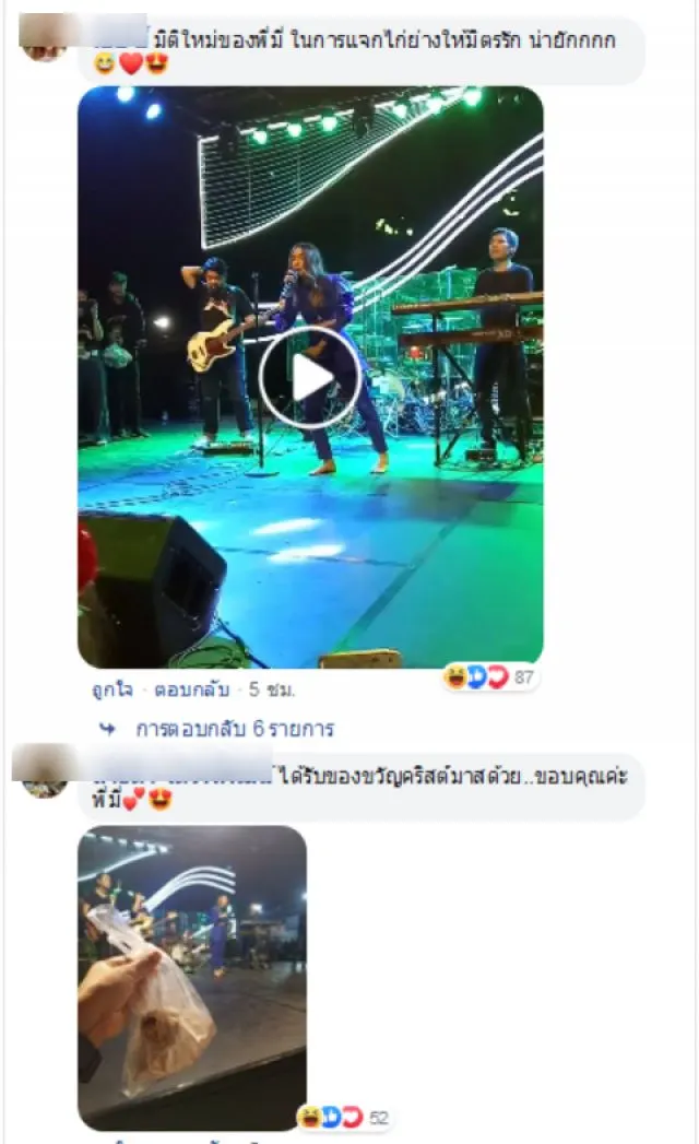 ก็ได้มีบรรดาแฟนคลับของพี่มี่ต่างก็เข้ามาคอมเม้นท์ ถึงของขวัญไก่ย่างที่ได้ในวันคริสต์มาสที่พี่มี่มอบให้