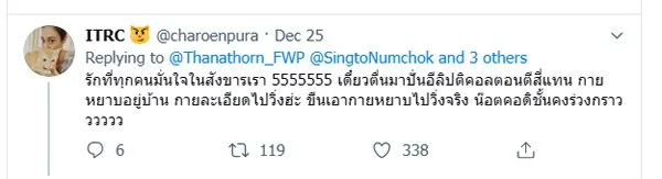 นายธนาธร จึงรุ่งเรืองกิจ หัวหน้าพรคคอนาคตใหม่ ได้มีการทวิตแทกคนในวงการบันเทิง 5 คนเพื่อชวนออกมาร่วมกิจกรรมการวิ่งที่มีนัยยะทางการเมือง "วิ่งไล่ลุง" ในวันที่ 12 ม.ค. 2563 นั้น ล่าสุดหนึ่งในผู้ถูกแทกอย่าง "ทราย เจริญปุระ" ก็ได้มีการทวิตกลับโดยระบุว่าอยากไปวิ่งแต่คงไปไม่ไหวเนื่องจากสังขารไม่เอื้ออำนวยนั่นเอง ขณะที่อีกหนึ่งคนบันเทิงอย่างนักร้องหนุ่ม "สิงโต นำโชค" (นำโชค ทะนัดรัมย์) ที่ถูกแทกก็ได้ออกมาชี้แจงว่าเรื่องนี้เป็นความเข้าใจผิด ตนเองเป็นกลาง และให้อีกฝ่ายลบแทกออกแล้ว ทั้งนี้ 5 คนบันเทิงที่นายธนาธรแทกหานั้นก็ประกอบไปด้วย สิงโต นำโชค, ทราย เจริญปุระ, ป้อง ณวัฒน์, โทนี่ รากแก่น และ ท็อฟฟี่ อู้วลาล่า